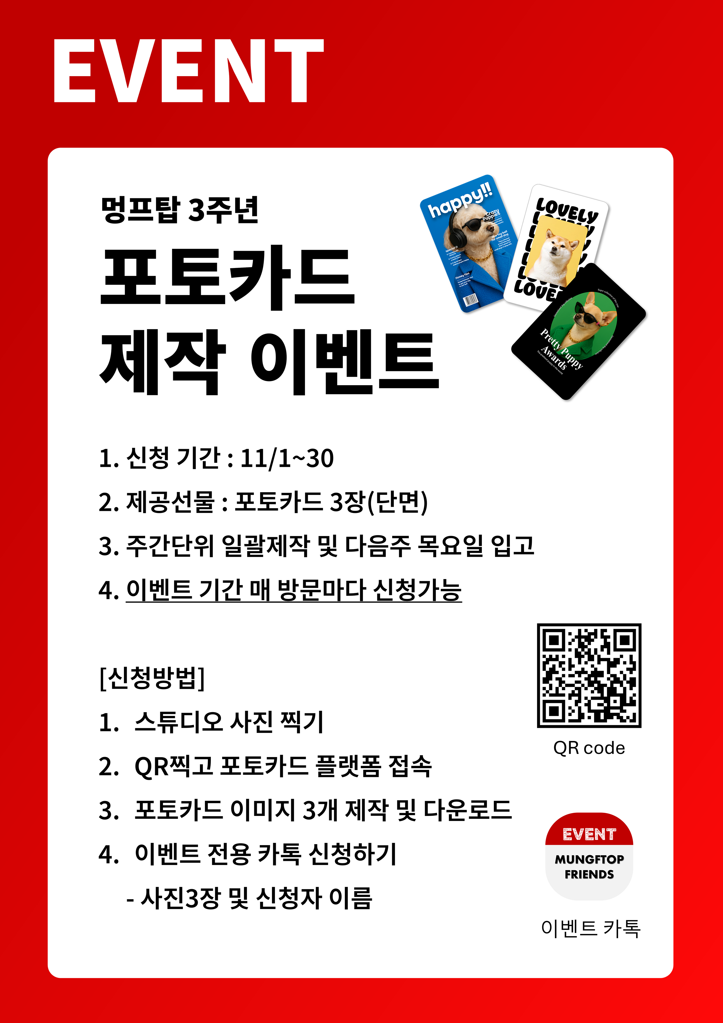 🎉 멍프탑 3주년 포토카드 제작 EVENT! 🎉
